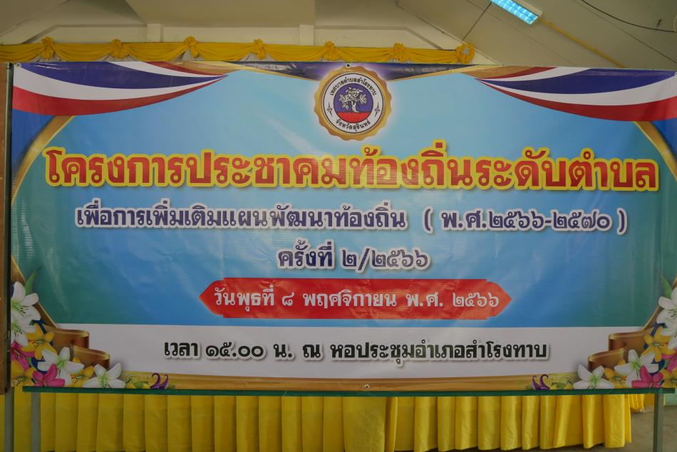 description เทศบาลตำบลสำโรงทาบ ได้ดำเนินการจัดโครงการ "ประชาคมท้องถิ่นระดับตำบล ประจำปีงบประมาณ พ.ศ. 2567" เพื่อเพิ่มเติมแผนพัฒนาท้องถิ่น (พ.ศ. 2566-2570) ครั้งที่ 2/2567 ในวันพุธ ที่ 8 พฤศจิกายน 2566 เวลา 15.00 น. เป็นต้นไป ณ หอประชุมอำเภอสำโรงทาบ ตำบลสำโรงทาบ อำเภอสำโรงทาบ จังหวัดสุรินทร์ โดยนายสมบัติ วิวาสุข นายกเทศมนตรีตำบลสำโรงทาบ เป็นประธาน และมีผู้เข้าร่วมตามโครงการ ดังนี้ คณะผู้บริหาร สมาชิกสภาเทศบาล ผู้ใหญ่บ้านหนองแล้ง ผู้ใหญ่บ้านหนองไผ่ล้อม ผู้ใหญ่บ้านห้วยแสง ผู้ช่วยผู้ใหญ่บ้านทั้ง 3 หมู่บ้าน ข้าราชการ พนักงานเทศบาล ปศุสัตว์อำเภอสำโรงทาบ นายสถานีรถไฟสำโรงทาบ ผู้อำนวยการโรงเรียนบ้านหนองแล้ง พัฒนาชุมชน ธนาคาร ธกส.ฯ,น พร้อมด้วยประชาชนทั่วไปประมาณ 147 คน วัตถุประสงค์ เพื่อเพิ่มเติมแผนพัฒนาท้องถิ่น (พ.ศ. 2566-2570) เพิ่มเติม ครั้งที่ 2/2567 เนื่องจากปัจจุบันสภาพเเวดล้อม สภาพปัญหาพื้นที่ บริบททางสังคมได้มีการเปลี่ยนแปลง ประกอบกับระเบียบและหนังสือสั่งการต่าง ๆ ทำให้แผนพัฒนาท้องถิ่นที่มีอยู่ไม่สามารถตอบสนองความต้องการของประชานได้อย่างแท้จริง จึงจำเป็นต้องเพิ่มเติมแผนพัฒนาท้องถิ่น เพื่อใช้เป็นแนวทางในการพัฒนาท้องถิ่น "ผลจากการมีส่วนร่วม" มีดังนี้ ประชาชนได้ร่วมแสดงความคิดเห็นถึงปัญหาที่เกิดขึ้น ทำให้สามารถตอบสนองความต้องการของประชาชน, เทศบาลมีแผนพัฒนาท้องถิ่นที่สามารถเป็นกรอบในการจัดทำงบประมาณรายจ่ายประจำปี งบประมาณรายจ่ายเพิ่มเติม งบประมาณจากเงินสะสมของแผนนั้น, ทำให้เเผนพัฒนาท้องถิ่นมีความสัมพันธ์ สอดคล้องกับนโยบายและสถานการณ์ในปัจจุบัน, สามารถนำแผนพัฒนาท้องถิ่นไปสู่การปฏิบัติอย่างเเท้จริง, ทำให้แผนบรรลุวัตถุประสงค์ เป้าหมาย อย่างคุ้มค่า "การนำผลจากการมีส่วนร่วมไปปรับปรุงพัฒนาการดำเนินงานในครั้งนี้" ซึ่งสามารถนำปัญหาและอุปสรรคต่าง ๆ ที่ประชาคมท้องถิ่นระดับตำบลได้เสนอปัญาและอุปสรรค ไปปรับปรุงแผนพัฒนาท้องถิ่น (พ.ศ. 2566-2570) ให้สอดคล้องกับสภาพปัญหาความเป็นจริงตามบริบทของพื้นที่ และนำแผนพัฒนาท้องไปปรับปรุงจัดทำสอดคล้องกับความต้องการของที่ประชาคม และพิจารณาเรื่องงบประมาณ ต่อไป person admin