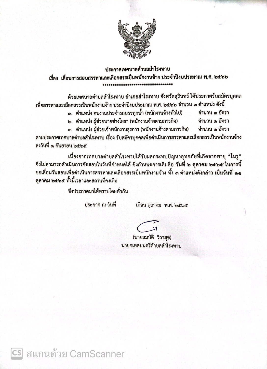 ขอเลื่อนวันสอบเพื่อดำเนินการสรรหาและเลือกสรรเป็นพนักงานจ้าง ทั้ง ๓ ตำแหน่งดังกล่าว เป็นวันที่ ๑๑ ตุลาคม ๒๕๖๕ ทั้งนี้เวลาและสถานที่คงเดิม