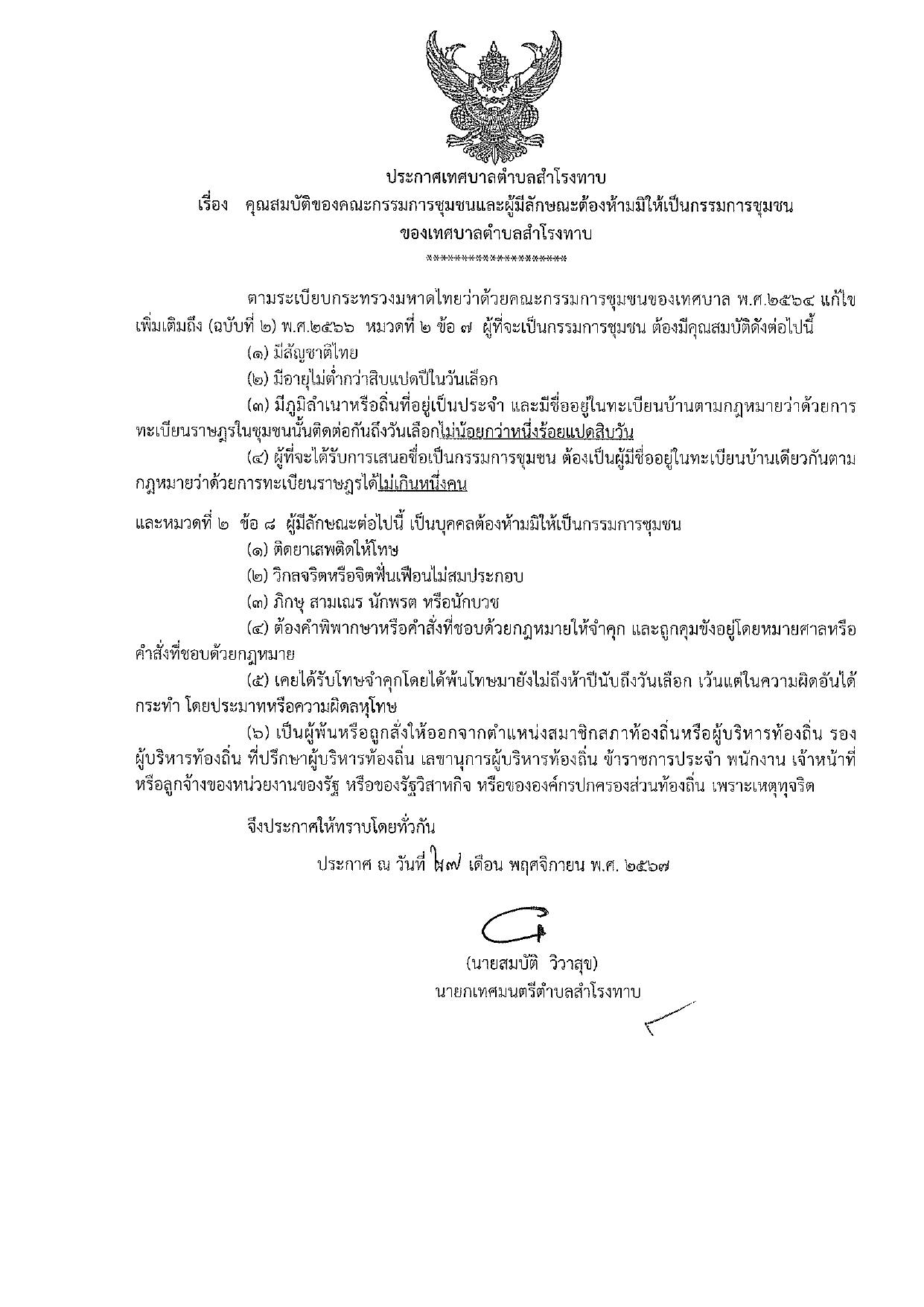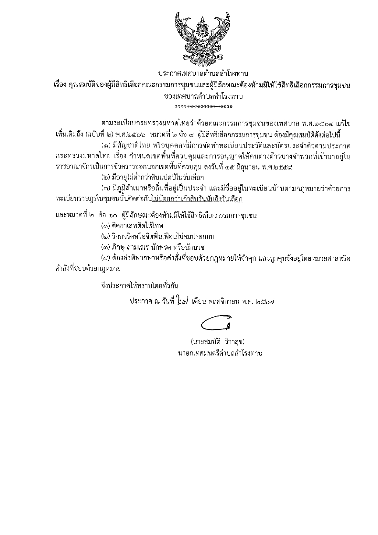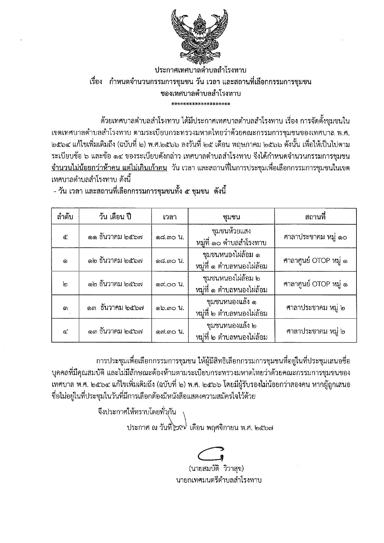 ประชาสัมพันธ์การเลือกกรรมชุมชน เทศบาลตำบลสำโรงทาบ ประจำปีงบประมาณ 2568